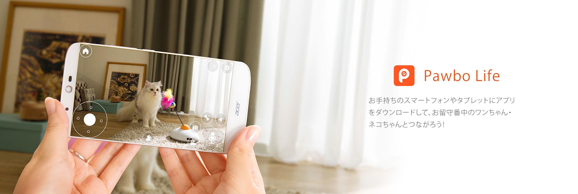 約1秒押すと、ボタンの表示が赤に変わり、動画の撮影を開始します。もう一度押すと録画を停止し、お使いのデバイスに保存されます。「Pawbo Life」Appをダウンロードする前に、ご利用のPAWBO機種がPAWBO+ (PPC-21CL)であることを確認してください。PAWBO(PPC-11CL)をご利用の場合は「Pawbo」Appをダウンロードしてください。 「Pawbo Life」AppはPAWBO(PPC-11CL)に対応していません。PAWBO+はネットワークを使用する製品です。接続環境によっては接続できないことがあります。ネットワーク接続または設置にお困りの場合は、カスタマーサービスセンターまでお問い合わせください。