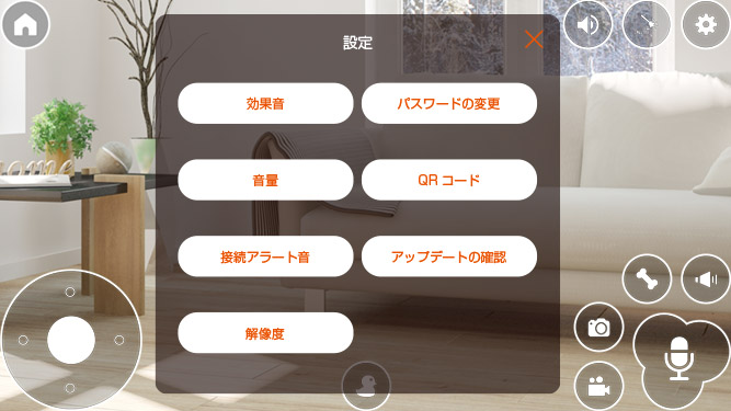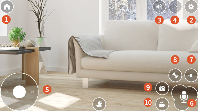 タップすると、おやつディスペンサーからおやつが出ます。続けておやつをあげるときは、最低3秒間おいてください。❾カメラアイコン